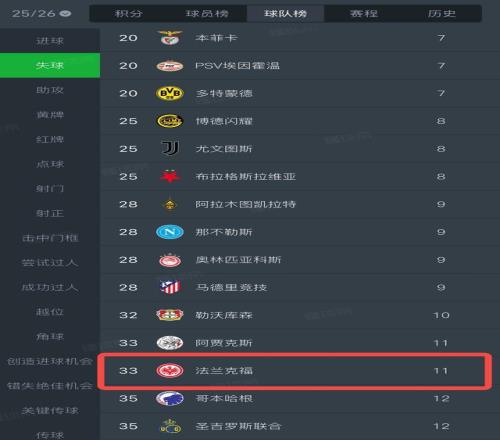 根据本赛季比赛数据,法兰克福4轮欧冠比赛失11球,仅有哥本哈根和圣吉罗斯联合失球更多(12粒)。